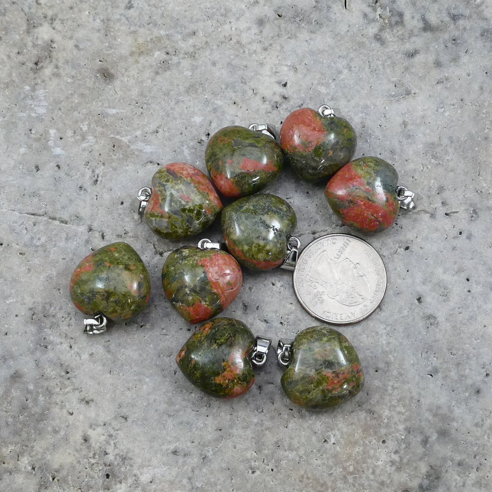 Unakite 20x20mm Heart Pendant